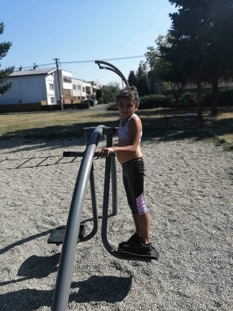 Dospelí prijímatelia, ale aj deti s radosťou využili outdoorové fitness prvky na cvičenie, ktoré sa pri jazierku nachádzajú.